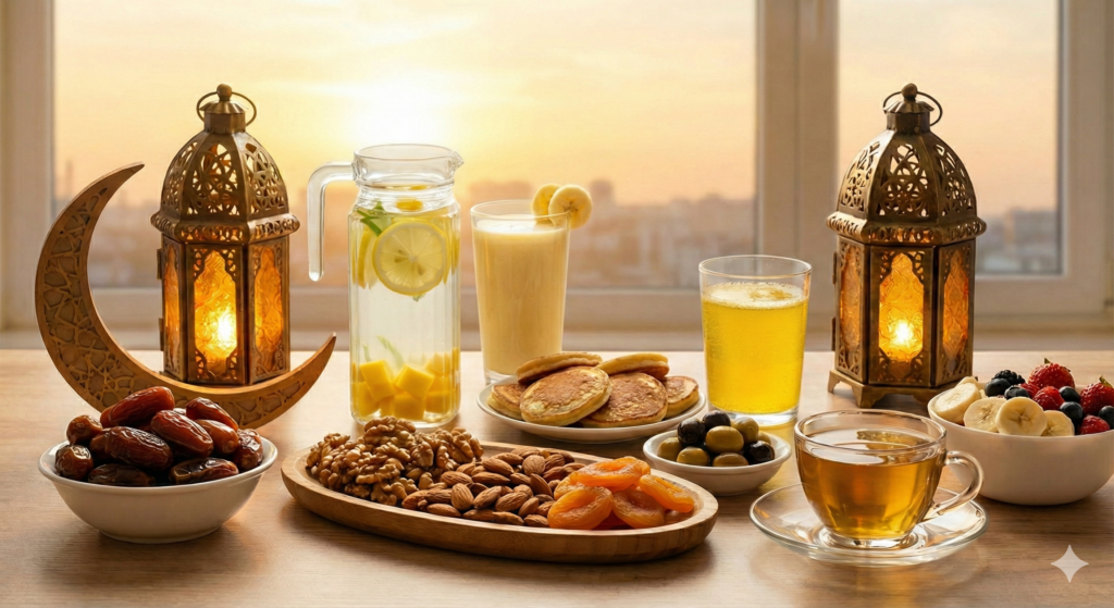 Das Sahur (die Mahlzeit vor der Morgendämmerung) ist entscheidend. Viele machen den Fehler, zu Sahur zuckerhaltige Speisen oder Weißmehlprodukte zu essen, was bereits am Vormittag zu einem rapiden Abfall des Blutzuckerspiegels und damit zu Müdigkeit und Hunger führt. Das Ziel muss eine lang anhaltende Sättigung sein.